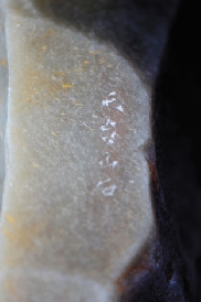 图为西泠印社副社长、中国篆刻研究院院长韩天衡在天台石毛胚上试刀:天台山石。