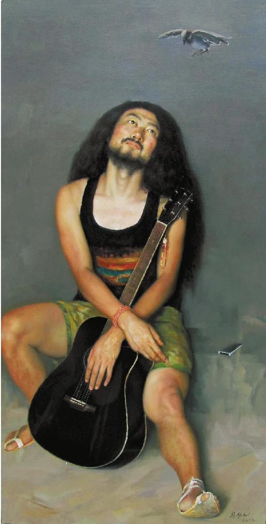 冉劲松 小鸟 100×200cm 布面油画 2012年