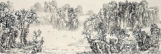 张伟平 山水 水墨纸本 镜片 款识:永福张伟平。 钤印:张(朱) 永福伟平(白) 50×179cm
