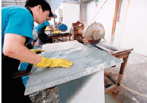 “凤起站”瓷砖在切割