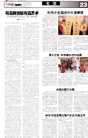 真的书法艺术,是由真的生命进入笔墨,既保存了生生不息、生机勃勃的生命力、鲜活性、丰盈性,又通过书法艺术的锤炼、提纯,实现了超越和净化,在入乎其内又出乎其外的过程中,接通了人类共同的审美、情感、信仰与理想,让个体生命与笔墨点画在接触中感觉如此亲切、贴合,似乎就是心灵某一部分的流淌与交流,在这一刻,观赏者就通过书法作品和作品后的真切情性,通过另一个“人”的真诚表达,感受了生命的本真、情感的真挚、人生的真谛甚至世界的本质。书法艺术的真与美的终极价值,在这一刻得以超越。