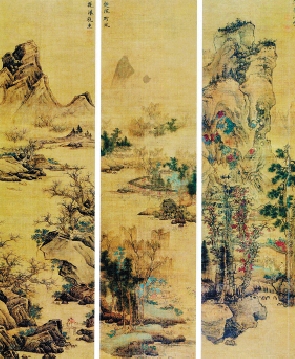 出版在《中国古代书画图目》中的署名蓝瑛画作(此处是十条屏其中之六),从1996年起不知在拍卖行拍卖、流标了多少次。