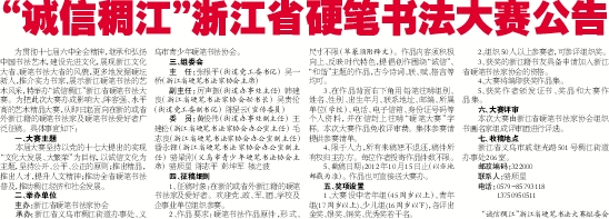 1、征稿对象:在浙的或省外浙江籍的硬笔书法家及爱好者。欢迎党、政、军、团、学校及企事业单位组织参赛。