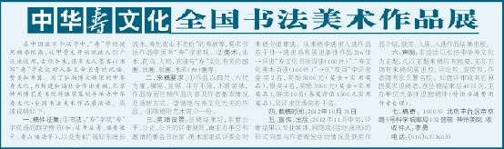 二、来稿要求:①作品以四尺、六尺为准,横幅、竖幅、斗方不限,不需装裱,作品背面注明作品内容及作者基本情况及通联方式。②谢绝与寿文化无关的作品。③随稿附艺术简介一份。