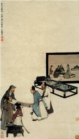 傅抱石 读画图 设色纸本 立轴 110×65.5cm