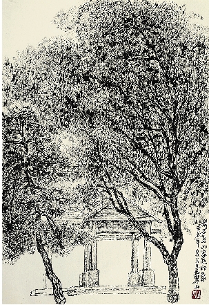 王界山 葫芦岛四家屯印象 37.5×25cm 焦墨山水画 2012年