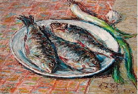 葛子瑜(吉林公主岭) 餐桌上的鱼 油画棒