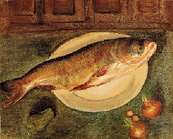 李铁夫 有小红果的鲢鱼 63.2×78.2cm 布面油画 1947年