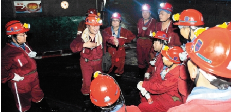 枣矿集团领导向画家们介绍井下工人的工作情况