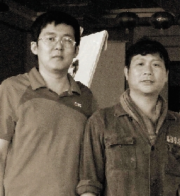 吴磊与矿工模特在作品前合影