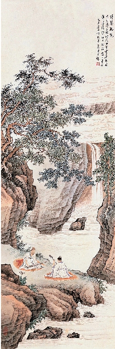 黄君璧 停琴听阮 44×132cm 1925年