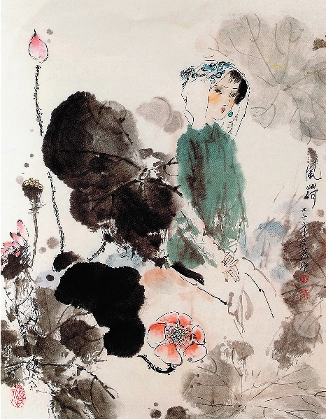 钱贵荪 风荷 国画