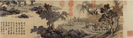 沈周 盆菊幽赏图卷(局部) 纸本设色 86×23.4cm