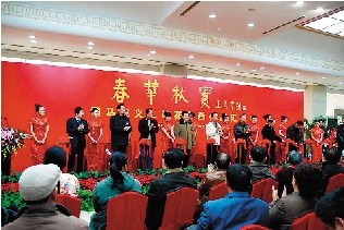 开幕式现场,“春华秋实”系王文章为此次画展特别题赠。