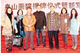 开幕式上,齐辛民与夫人秋萍一起和临沂的著名花鸟画家房新泉先生、高群、王钱潮、旅游卫视《艺眼看世界》制片人朱慧晴等留影。