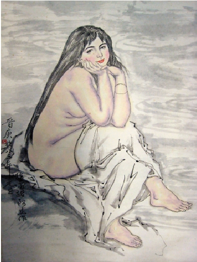 晋庚 涛声(拟雷诺阿《海边》) 100×66cm 1983年