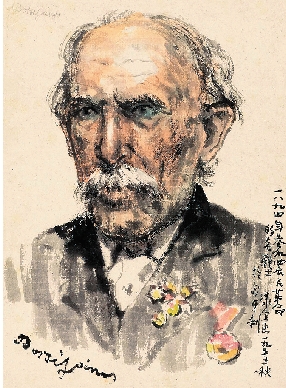 匈牙利老战士 水墨 35.5×26cm 1955年