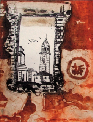 刘磊(广东顺德容山中学) 窗外的世界 综合版画