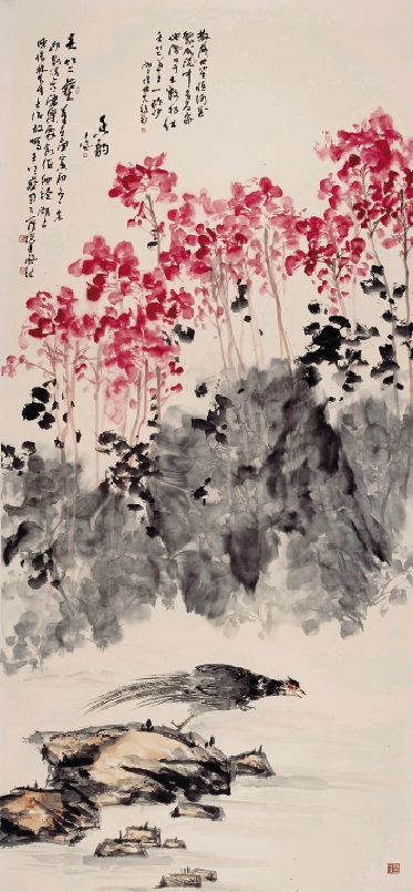 张大风 花鸟 136×68cm