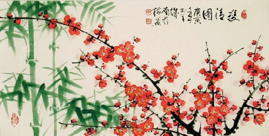 南岭梅 双清图 100×50cm