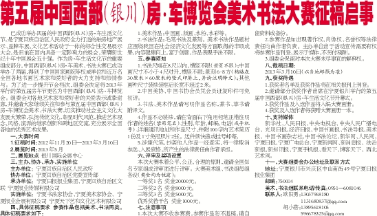 第五届中国西部(银川)房·车博览会美术书法大赛征稿启事