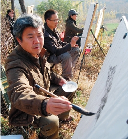 | 王界山 1963年生于山东青州市。先后毕业于解放军艺术学院、首都师范大学。现任空军美术书法研究院副院长、国家一级美术师、空军文艺创作室副主任、清华大学美术学院高级研修班导师、中国美术家协会理事、中国画学会理事、北京美术家协会理事、北京美协中国画艺委会委员、全军美术家高级职称评审委员、第六次全国美术家代表大会代表、第八次全国文学艺术界联合会代表。曾获第三届北京中青年文艺工作者“德艺双馨奖”、全军文化艺术工作先进个人,清华大学美术学院访问学者。作品《金秋无闲人》、《天地之间》入选第八届、第九届全国美术展览,多次参加全军、全国性美术展览,并有作品获奖。出版有《王界山诗·文·画选集》、《天地之间——王界山画集》、《王界山写生作品选》、《中国当代书画名家经典作品丛书——王界山作品集》、《共和国六十位国画大家精品集——王界山》等专著。中国画《接天连地无穷碧》搭载神七遨游太空。被读者与媒体评为第一届、第二届、第三届当代最具学术价值与收藏升值潜力的中国画金鼎十二家。 2009年被评选为当代全国30位最具学术价值与市场潜力的山水画家。8月至10月,历时3个月为中国航空博物馆创作完成巨幅山水画《长城万里映金辉》(1100×370cm)。 2011年6月荣获哈萨克斯坦共和国艺术科学院荣誉院士称号。同年10月,由山东省青州市人民政府支持、宋城集团承办的界山艺术馆在青州落成。 2012年6月,中国画《密林深处自有情》荣获由国家文化部、外交部、上海合作组织等联合主办的北京峰会“和睦”国际美术作品展优秀作品奖。 |