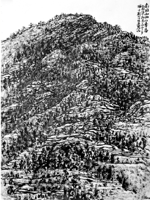 王界山 南国山田四季春 45×32cm 焦墨山水画