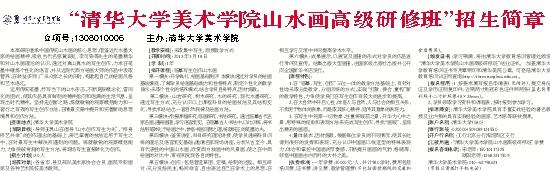 美术报 画家 00032 “清华大学美术学院山水画高级研修班”招生简章 2013-02-23 美术报2013-02-2300016;美术报2013-02-2300017;美术报2013-02-2300018 2 2013年02月23日 星期六