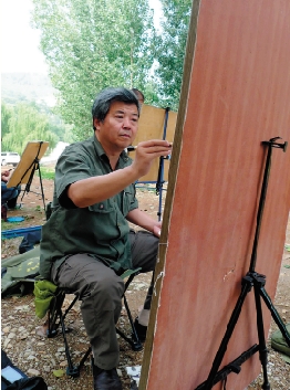 | 王界山 1963年生于山东青州市。先后毕业于解放军艺术学院、首都师范大学。现任空军美术书法研究院副院长、国家一级美术师、空军文艺创作室副主任、清华大学美术学院高级研修班导师、中国美术家协会理事、中国画学会理事、北京美术家协会理事、北京美协中国画艺委会委员、全军美术家高级职称评审委员、第六次全国美术家代表大会代表、第八次全国文学艺术界联合会代表。曾获第三届北京中青年文艺工作者“德艺双馨奖”、全军文化艺术工作先进个人,清华大学美术学院访问学者。作品《金秋无闲人》、《天地之间》入选第八届、第九届全国美术展览,多次参加全军、全国性美术展览,并有作品获奖。出版有《王界山诗·文·画选集》、《天地之间——王界山画集》、《王界山写生作品选》、《中国当代书画名家经典作品丛书——王界山作品集》、《共和国六十位国画大家精品集——王界山》等专著。中国画《接天连地无穷碧》搭载神七遨游太空。被读者与媒体评为第一届、第二届、第三届当代最具学术价值与收藏升值潜力的中国画金鼎十二家。 2009年被评选为当代全国30位最具学术价值与市场潜力的山水画家。8月至10月,历时3个月为中国航空博物馆创作完成巨幅山水画《长城万里映金辉》(1100×370cm)。 2011年6月荣获哈萨克斯坦共和国艺术科学院荣誉院士称号。同年10月,由山东省青州市人民政府支持、宋城集团承办的界山艺术馆在青州落成。 2012年6月,中国画《密林深处自有情》荣获由国家文化部、外交部、上海合作组织等联合主办的北京峰会“和睦”国际美术作品展优秀作品奖。 |