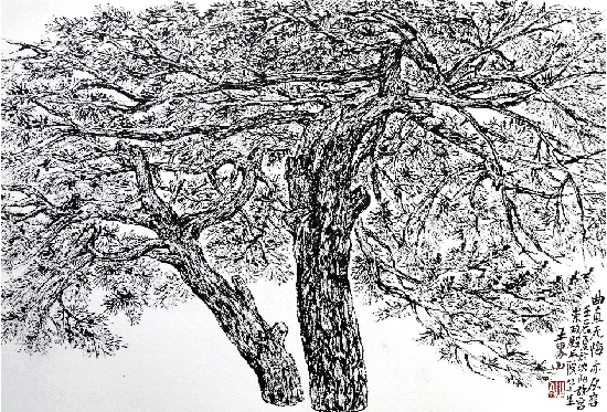 王界山 曲直无悔亦从容 25×37.5cm 焦墨山水画