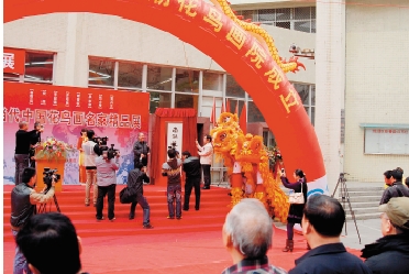 展览开幕式上,著名花鸟画家李自强先生、汕头市美协主席许自敬先生为南潮花鸟画院揭牌。