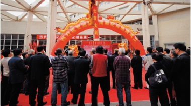 展览开幕式上,参加开幕式的汕头市、区各级领导和艺术家一起站在主席台下观看狮舞。舞狮表演者顺着一根七八米长的杆子,爬到顶端亮出了“大吉大利”4个字,祝愿画展成功,把开幕式又一次推向高峰。