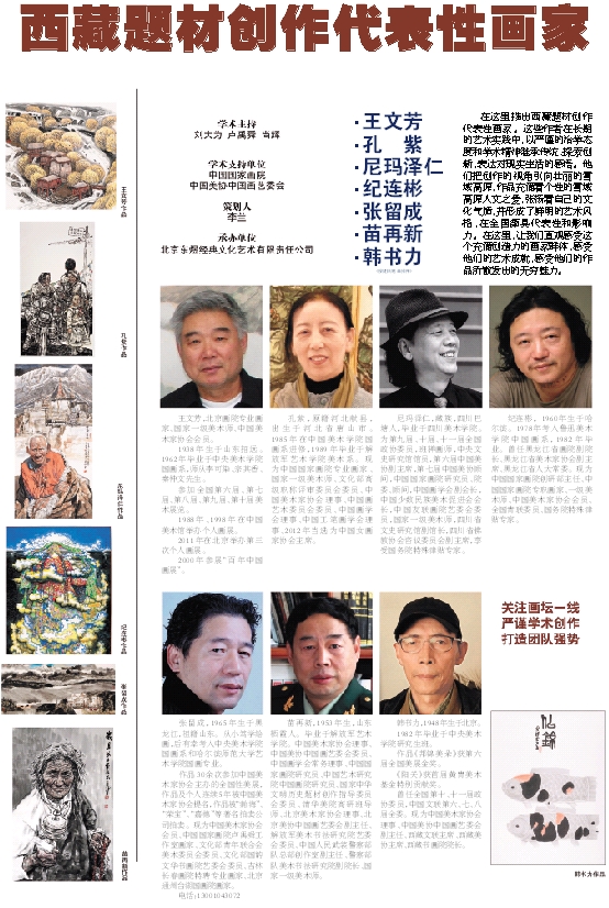 在这里推出西藏题材创作代表性画家。这些作者在长期的艺术实践中,以严谨的治学态度和学术精神继承传统、探索创新,表达对现实生活的感悟。他们把创作的视角引向壮丽的雪域高原,作品充满着个性的雪域高原人文之爱,张扬着自己的文化气质,并形成了鲜明的艺术风格,在全国颇具代表性和影响力。在这里,让我们直观感受这个充满创造力的画家群体,感受他们的艺术成就,感受他们的作品所散发出的无穷魅力。