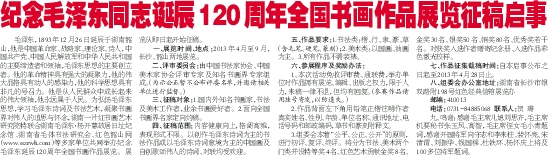 纪念毛泽东同志诞辰120周年全国书画作品展览征稿启事