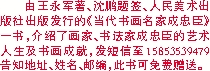 由王永军著、沈鹏题签、人民美术出版社出版发行的《当代书画名家成忠臣》一书,介绍了画家、书法家成忠臣的艺术人生及书画成就,发短信至15853539479告知地址、姓名、邮编,此书可免费赠送。