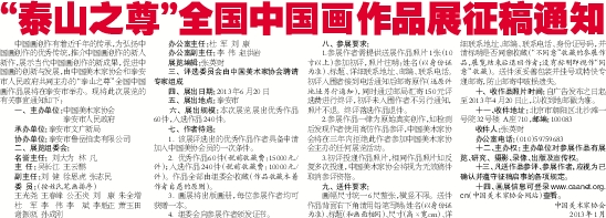“泰山之尊”全国中国画作品展征稿通知