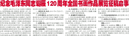 纪念毛泽东同志诞辰120周年全国书画作品展览征稿启事