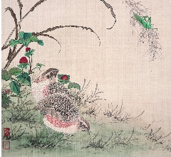 于希宁 工笔花鸟册之三鹌鹑螳螂