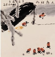 儿时的辛民曾经抓过一只小麻雀,自己却眼看着麻雀守着米和水而饿死被惊呆了!祖父告诉他,不管是麻雀还是任何的小鸟,它们都有自己的家园,都习惯自由自在地活着,宁死也不苟且偷生,这是一种鸟性。辛民含着眼泪把麻雀埋在了院子里的墙根下,一直难过了很多天。这件事,在他幼小的心灵留下了深刻印象,也给了他很大的震撼:小鸟都能做到宁死不屈,何况我们人呢!2012年,齐辛民在新作中创作了《人为财死、鸟为食亡》。