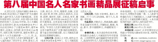 征稿对象:省级以上书协、美协会员(需提供会员证复印件)。名人书画院院士优先入选。