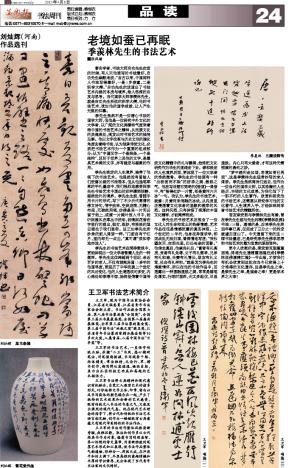 “梦中趋利走如烟,老境如蚕已再眠”,这是季羡林先生经常抄写的宋人偈语。季先生虽然离我们远去,但作为一位当代的国学大师,以其浩瀚的人生经历、丰硕的文化成果,为我们写下了一部不朽的人生著作。欣赏和研究他的书法艺术,还需要从研究学习他的文化著作、人生境界入手,才能体味到学者书法艺术的精髓所在。