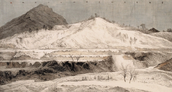 编号:041301 雪舞长空山色清明 98×180cm 国画