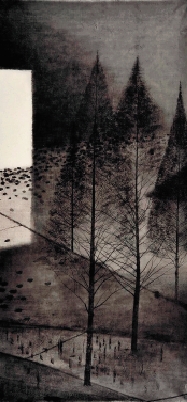 沈勤 水杉白房子(局部) 135×65cm 宣纸墨 2013年