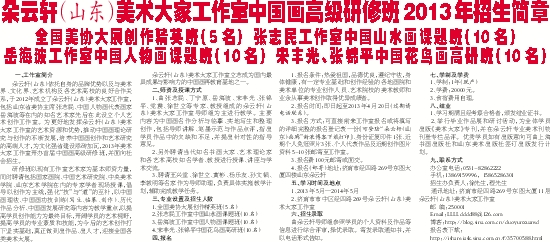 朵云轩(山东)美术大家工作室中国画高级研修班2013年招生简章