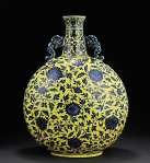 清雍正 青花黄地缠枝花卉纹扁壶 621万港币成交