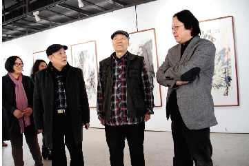 感恩母校——齐辛民向山东艺术学院捐赠书画仪式暨作品展在山东艺术学院美术馆开幕,山东艺术学院院长张志民先生、副院长王力克先生,一边看展览一边赞不绝口。