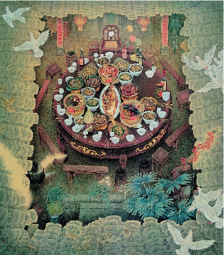 赵洪琦 家和万事兴 157×180cm 纸本 2003年
