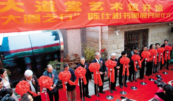 | 剪彩嘉宾(左起):中央芭蕾舞团党委书记王才军、中央文史馆书画院院长马振声、国家画院常务副院长卢禹舜、国学大家刘克雄、第十一届全国政协副主席李金华、著名画家王挥春、中国电影家协会原副主席苏叔阳、太湖文化论坛执行主席严昭柱、中国书协原驻会副主席刘艺、泸州市委宣传部部长鞠丽、著名美术理论家刘曦林、北大书法研究所所长王岳川、国家食品药品监督管理局副局长孙咸泽 |