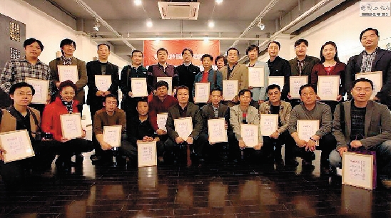 首届学员在恒庐美术馆“美术报·陈振濂书法工作室毕业成果展”上留念(部分)