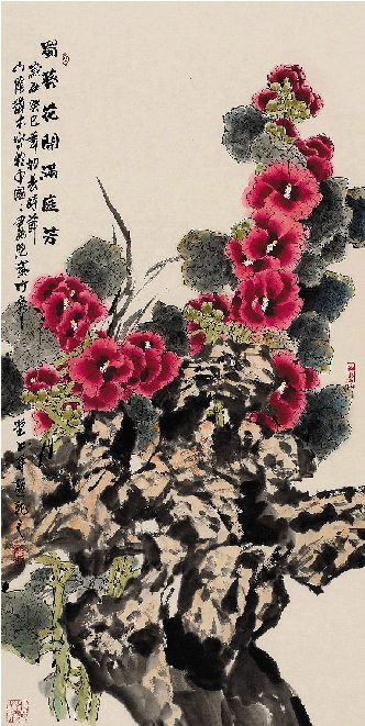 裘缉木 蜀葵花开满庭芳 136×67cm 2013年